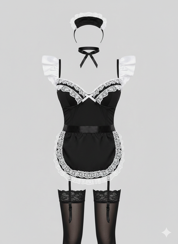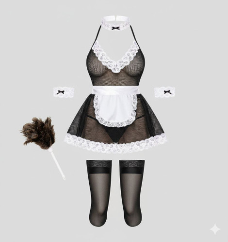 کاستوم خدمتکاری 5 تکه (جوراب، کلاه، پیش بند، پاپیون) کد 039