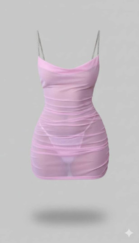 لباس خواب صورتی پشت زنجیری 5142/ حریر کیفیت عالی