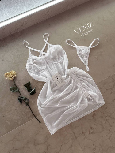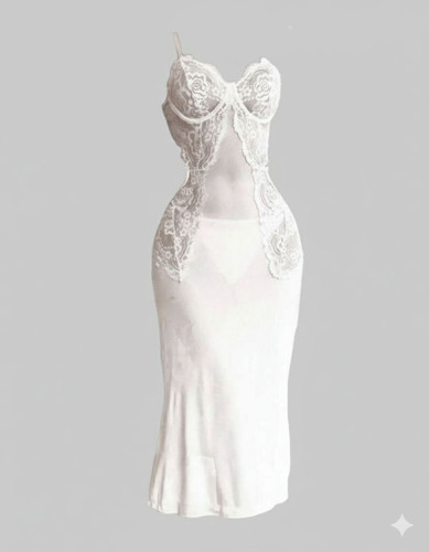 لباسخواب بلند فنردار گیپور دار سفید