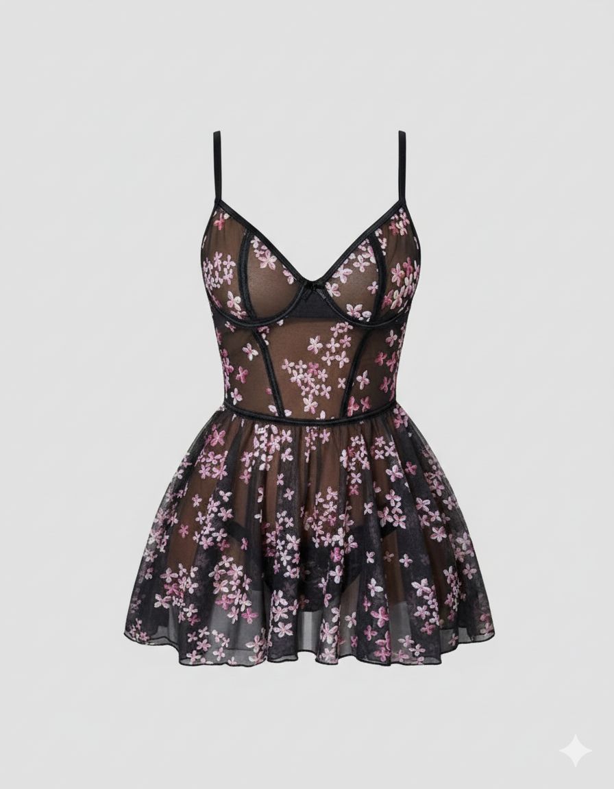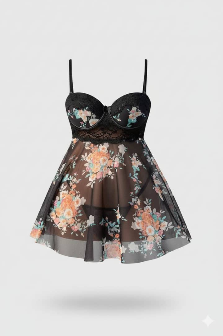 لباسخواب مشکی گلدار