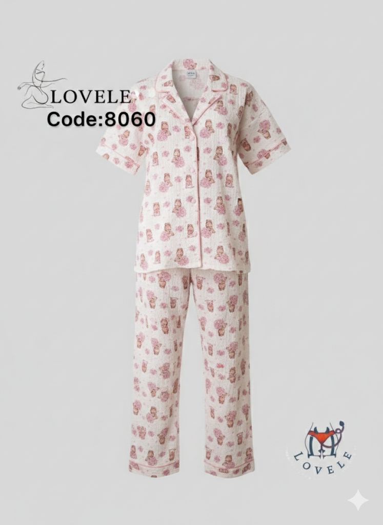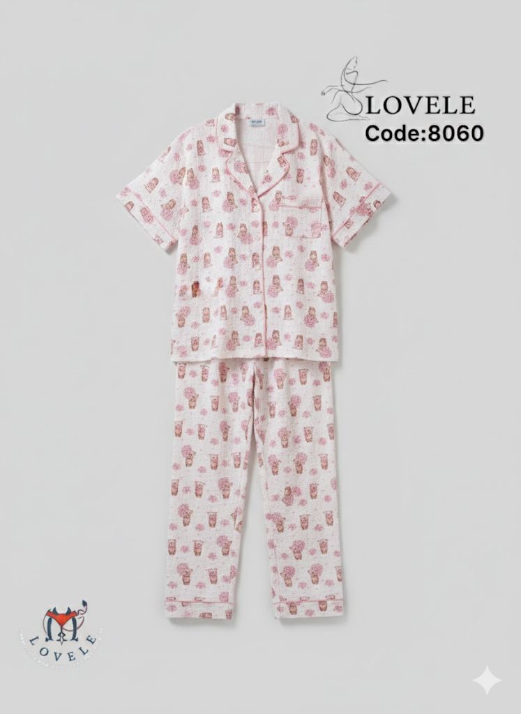 شومیز و شلوار نخی طرح پفکی تنخور بسیار عالی تضمین دوخت و برش و چاپ در دو طرح تدی و پاپیون فری سایز قواره دار