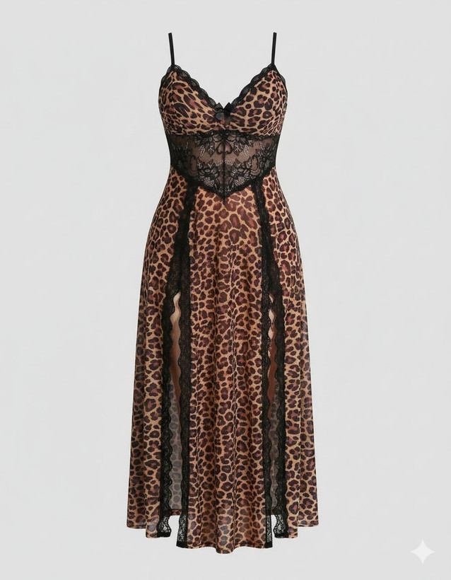 لباس خواب فانتزی بلند پلنگی کد:100420 کیفیت عالی رنگ:مطابق عکس سایز:.بیگ