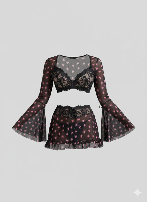 ست سهتکه توری فوقالعاده شیک و خاص برند: Lovele کد: 8045 سایزبندی: L | XL رنگبندی: مشکی 🖤قرمز ❤️سرمهای 💙 جعبه و بسته بندی بسیار شیک
