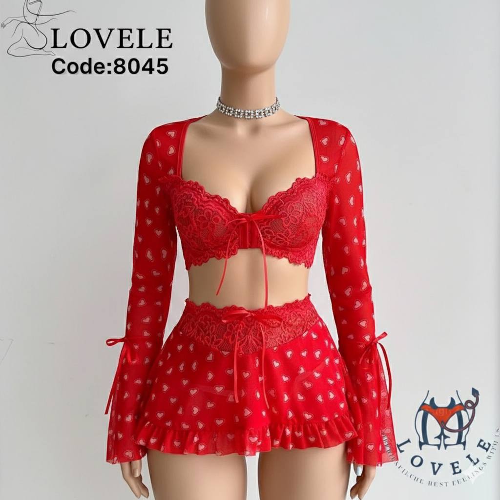 ست سهتکه توری فوقالعاده شیک و خاص برند: Lovele کد: 8045 سایزبندی: L | XL رنگبندی: مشکی 🖤قرمز ❤️سرمهای 💙 جعبه و بسته بندی بسیار شیک
