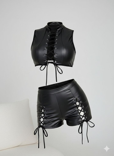 ست نیم تنه و شورت نخی کد 325 سایز بندی لارج و ایکس لارج رنگ مشکی
