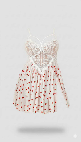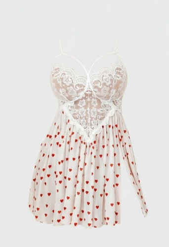 لباسخواب سفید قلبی 100347/ بیگ سایز کیفیت عالی