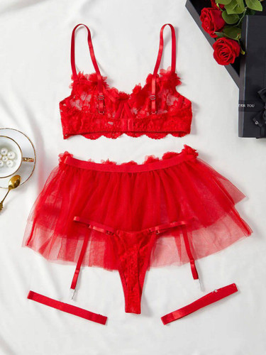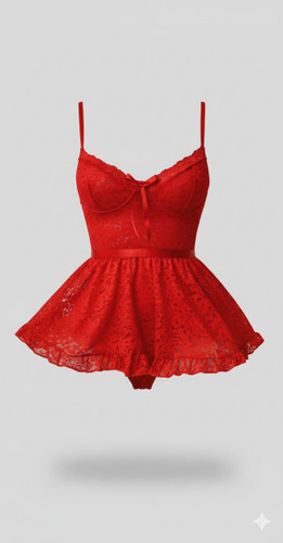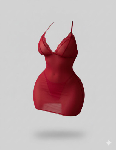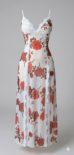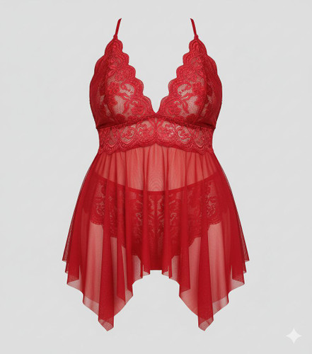 لباسخواب شکوفه ای حریر قرمز همراه با لامبادا