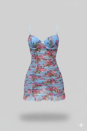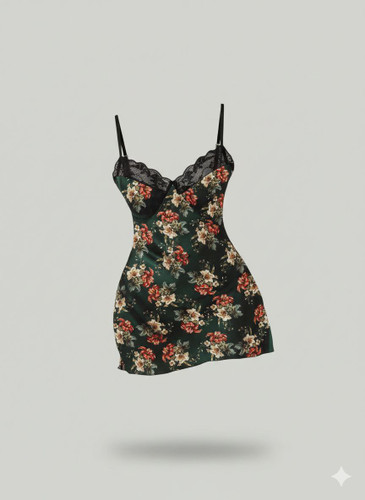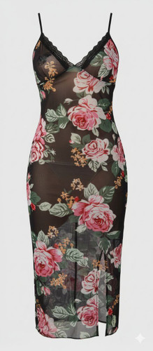 لباسخواب پیراهنی گلدار فنردار همراه با لامبادا