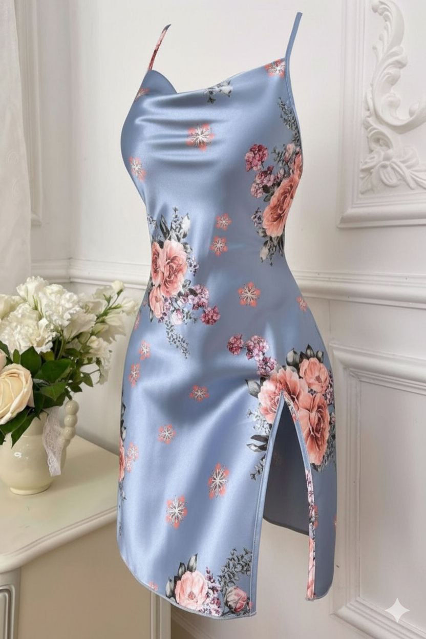 لباسخواب پیراهنی گلدار فنردار همراه با لامبادا